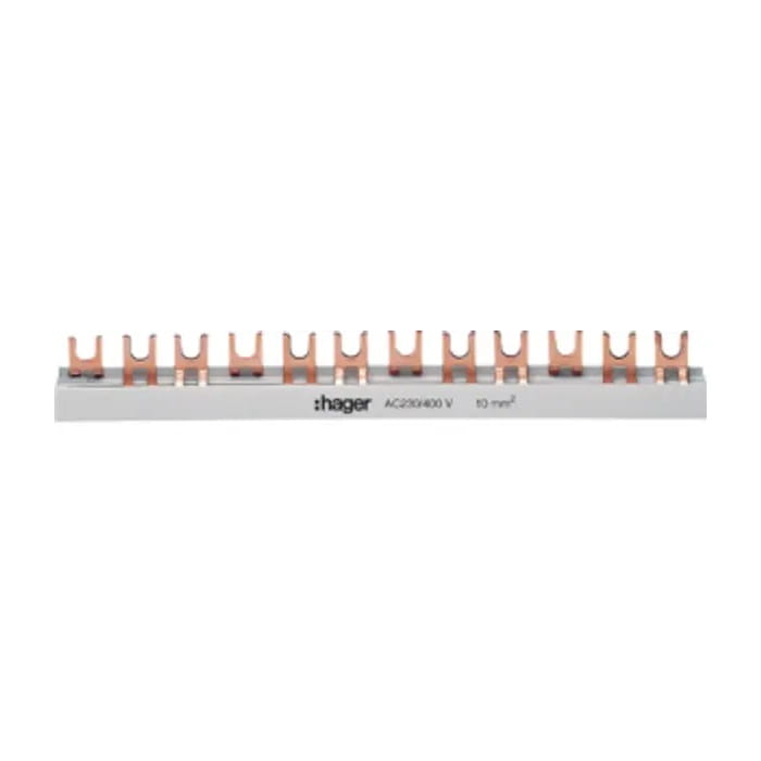 Abzweigschiene 3-polig 57mod 10mm2, KDN363B Gabelklemme Hager Schaltschienen werden verwendet, um Strom zu überbrücken oder Produkte miteinander zu verbinden. Die Wahl des richtigen Bustyps hängt von der Art des Geräts ab, da sich die physikalischen Parameter unterscheiden.